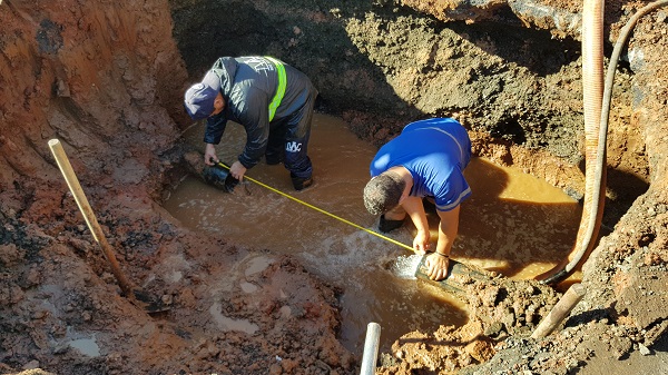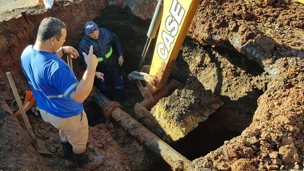 Para executar o reparo, foi necessário parar temporariamente a Estação de Tratamento de Água “José Maria Pedroso” (ETA 1) para despressurizar a tubulação.
